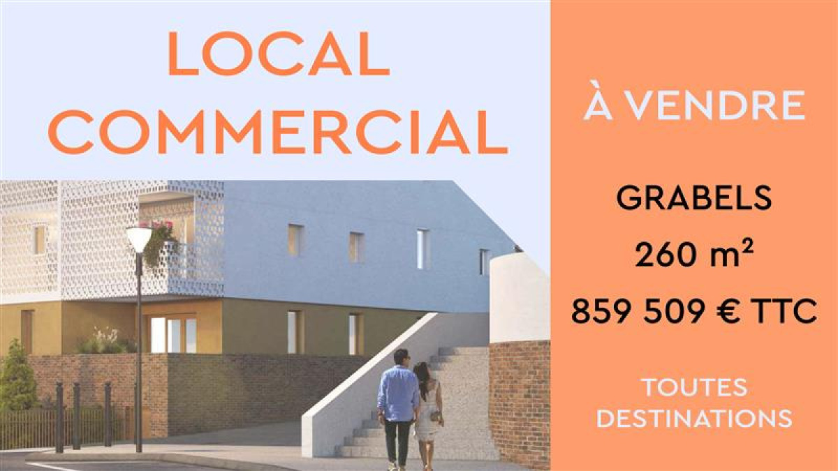 Montpelier banlieue- Grabels - Quartier Valsière, nous vous proposons un local commercial de 259,89 m², toute destination hors Restauration dans une résidence de 50 logements située à Grabels.
