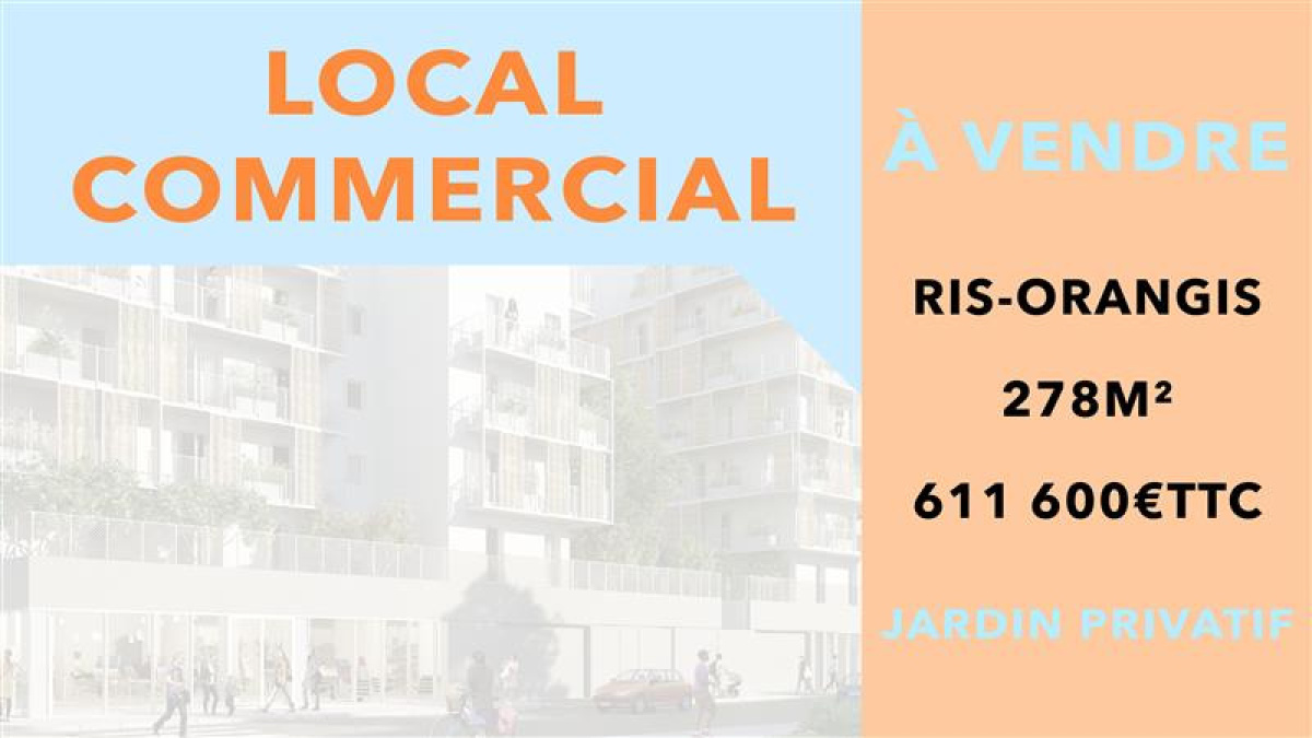 RIS-ORANGIS (91) - Nous vous proposons à la vente un local commercial de 278,21m² avec jardin privatif de 365,98m², situé en rez-de-chaussée d'une résidence récente au coeur du quartier Le Clos Langlet. Le bien bénéficie d'un emplacement stratégique, à proximité de l'autoroute A6 (à 1,5km), de l'ancienne RN7 (à 1km) et la route départementale reliant Corbeil-Essonnes, Grigny et Viry-Châtillon. La gare RER D, à seulement 800 mètres, permet de rejoindre Paris en 30 minutes. Le local est livré brut de béton, avec fluides en attente et vitrines à poser à charge acquéreurs permettant un aménagement sur mesure selon vos besoins. Toutes les activités sont envisageables, sauf restauration, discothèque et garage. Un second local de 177m², au prix de 389 542€TTC, est également disponible. Possibilité d'acquérir jusqu'à 8 emplacements de stationnement en RDC au prix de 5 000 € HT/unité. Frais de notaire réduits et TVA récupérable si assujetti. Intéressé(e) ? Contactez-nous dès aujourd’hui pour plus d’informations ou une étude personnalisée de votre projet.