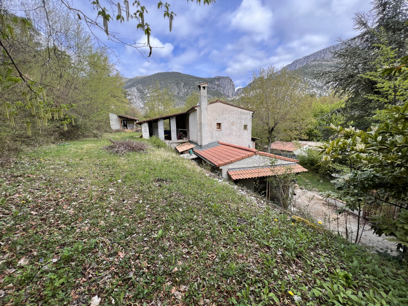 Aiglun - Dans l'arrière pays niçois, à moins de 1h30 de Nice, maison individuelle 4P de 105m² sur un terrain de 978m² comprenant un séjour/salle à manger avec cheminée, une cuisine indépendante, 3 chambres dont une de plain pieds, une salle de bains, wc.